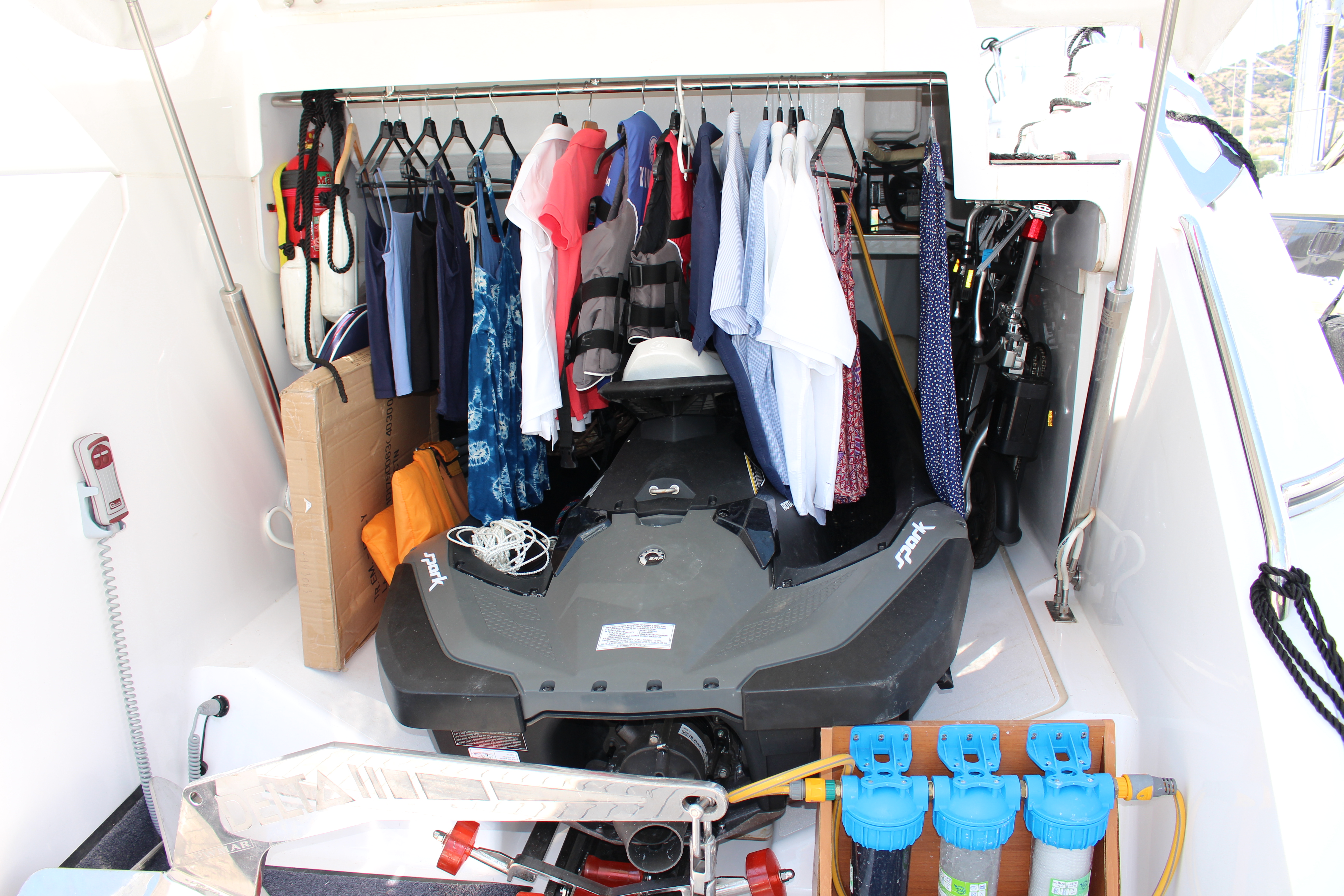 - A rail to hang life jackets and buoyancy aids – and which doubles as a laundry drying rail